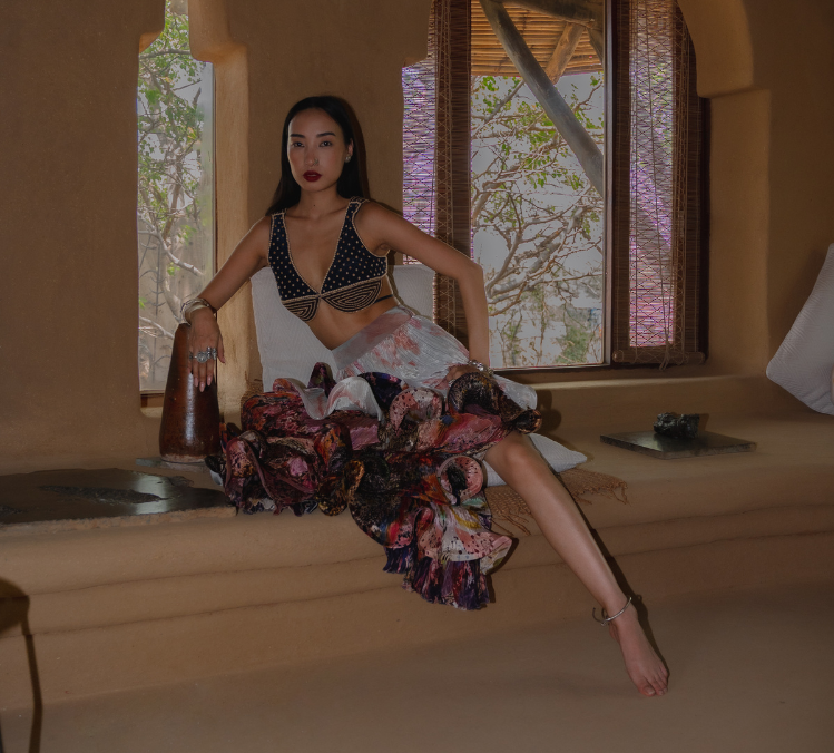 As a made-to-order label, Puri embraces bespoke creation as both luxury and responsibility, minimising excess while honouring the intimacy of handcraft. Collaborating with artisans trained in traditional techniques, the brand weaves Indian lineage into a global sensibility: fluid, refined, and cosmopolitan.
